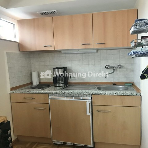 vollmöbliert mit W-Lan, TV, DVD, Designer-Ledersofa (2 m),  Bett (200 x 100 cm), Schrankwand, Kleiderschrank, Arbeitstisch,  Kitchenette (voll ausgestattet mit Kochfeld, 4* Kühlschrank, Minibackofen, Mikrowelle, div. Geschirr)
